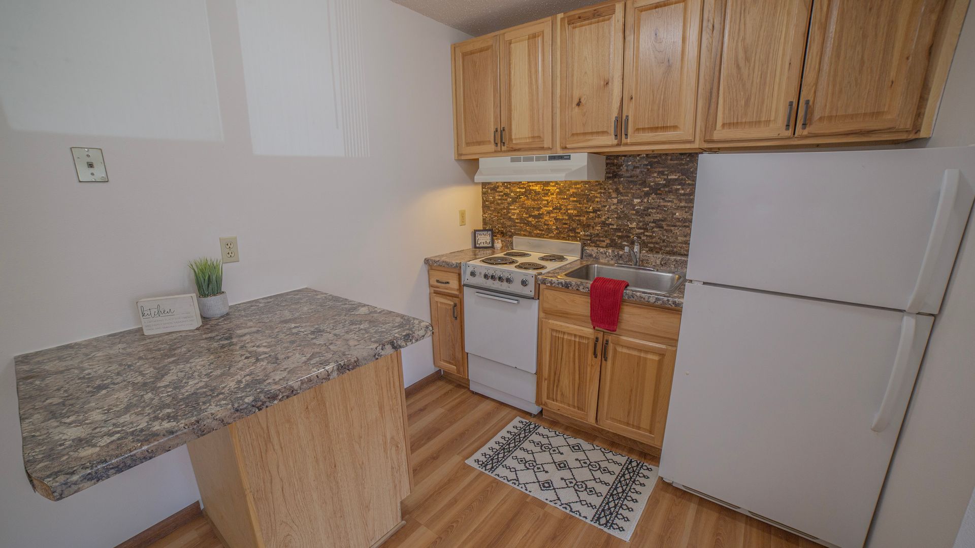 This spacious 1 bedroom 1 bathroom apartment is located in a quiet area of West Fargo. You’ll find this unit has more than enough living space with 510 sq ft! There is plenty of space for storage with a closet in the bedroom, entry closet, and a walk-in storage closet. Each unit comes with an assigned parking space, as well as guest parking for the convenience of your visitors. Our laundry facility has new machines that accept both card and coin payments, making laundry less of a hassle. We’re also cat friendly, just ask about our pet fees and bring your furry friend along! Call us today to schedule a tour of your new home!